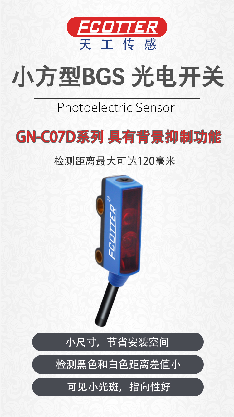 ECOTTER 小方型光電開關(guān)GN-C07系列是具有背景抑制功能的光電開關(guān)中尺寸最小的款式,它秉承光電開關(guān)的優(yōu)良特性檢測(cè)距離遠(yuǎn),檢測(cè)白色距離達(dá)到1~120毫米,檢測(cè)黑色距離5~110毫米,黑白差值小。產(chǎn)品機(jī)身厚度7.7毫米節(jié)省安裝空間,反應(yīng)速度快,有效保證了應(yīng)用中不會(huì)出現(xiàn)過多的反應(yīng)延遲。上電時(shí)發(fā)出紅光,可清楚看到感應(yīng)的位置,方便調(diào)整檢測(cè)范圍。