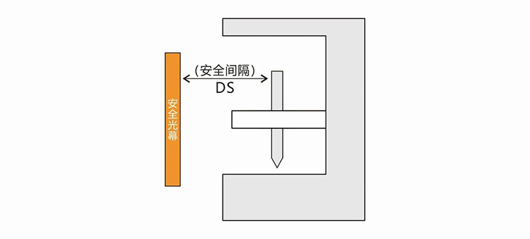 安全間隔:是指光幕至工作危險(xiǎn)區(qū)--模具刃口之間的最短間隔,即從手遮擋光幕的位置開(kāi)始到達(dá)危險(xiǎn)邊界之前,能夠使滑塊停止所需要的間隔。安全間隔是確保安全光柵實(shí)現(xiàn)保護(hù)功能的必要條件之一,必須正確計(jì)算安全間隔!其計(jì)算方法應(yīng)根據(jù)壓力機(jī)制動(dòng)方式而定。安全間隔的距離應(yīng)當(dāng)按照J(rèn)B3350-93中第11.5條的規(guī)定計(jì)算: