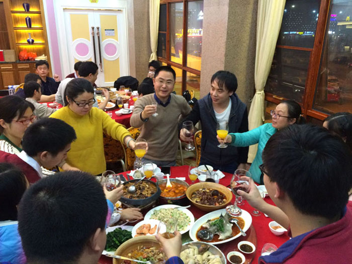 晚會(huì),開(kāi)始楊總就為我們總結(jié)過(guò)去,展望未來(lái),同時(shí)帶領(lǐng)我們?yōu)榱颂旃み@個(gè)大家庭的親情、友情、恩情一起舉杯歡飲。