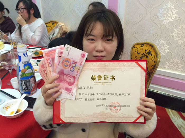 最后,我們?yōu)楫?dāng)晚的幸運(yùn)兒表示祝賀,為優(yōu)秀員工表示崇高的敬意。2018已經(jīng)結(jié)束,2019才剛剛開(kāi)始,讓我們天工的家人們一起乘風(fēng)破浪、披荊斬棘,把2019裝飾成一個(gè)更美好的明天。天工機(jī)械加油,2019加油!