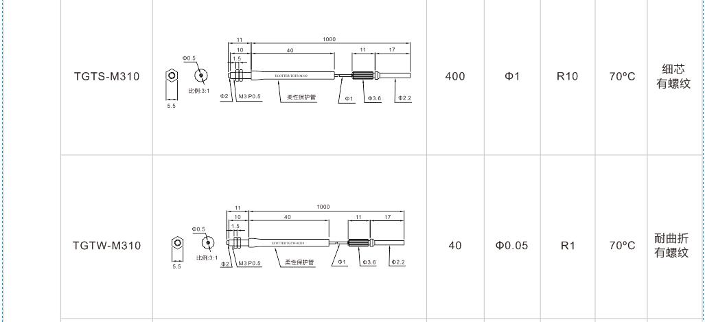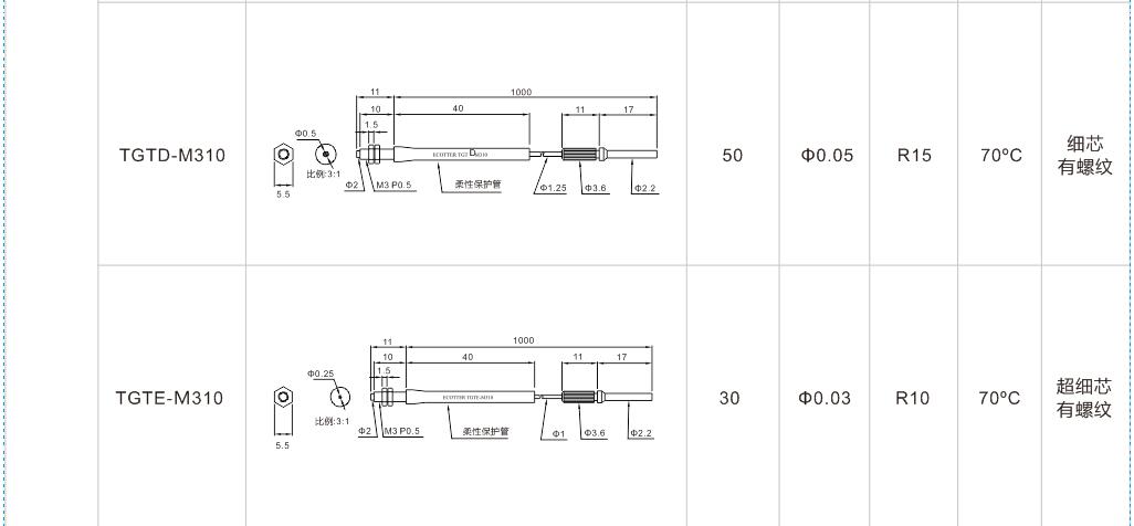 有螺紋無凸管系列光纖