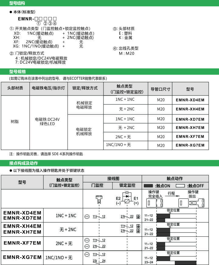 安全門開關 電磁式 兩組觸點 EMNR-X 系列