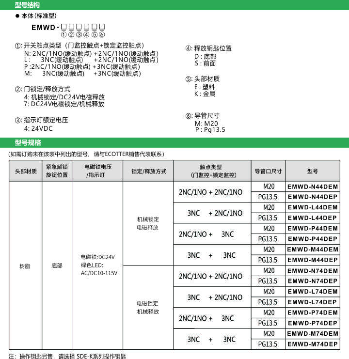 安全門開關 電磁式 六組觸點 EMWD 系列