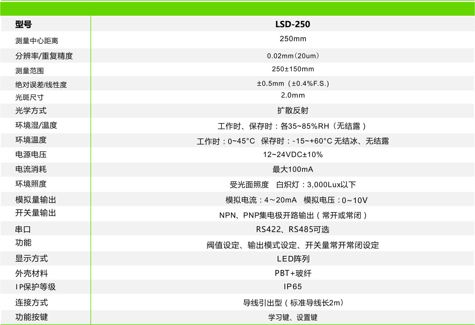 首頁 > 產(chǎn)品中心 >>傳 感 器 >> 激光位移傳感器 >> 激光位移傳感器 LSD-250
